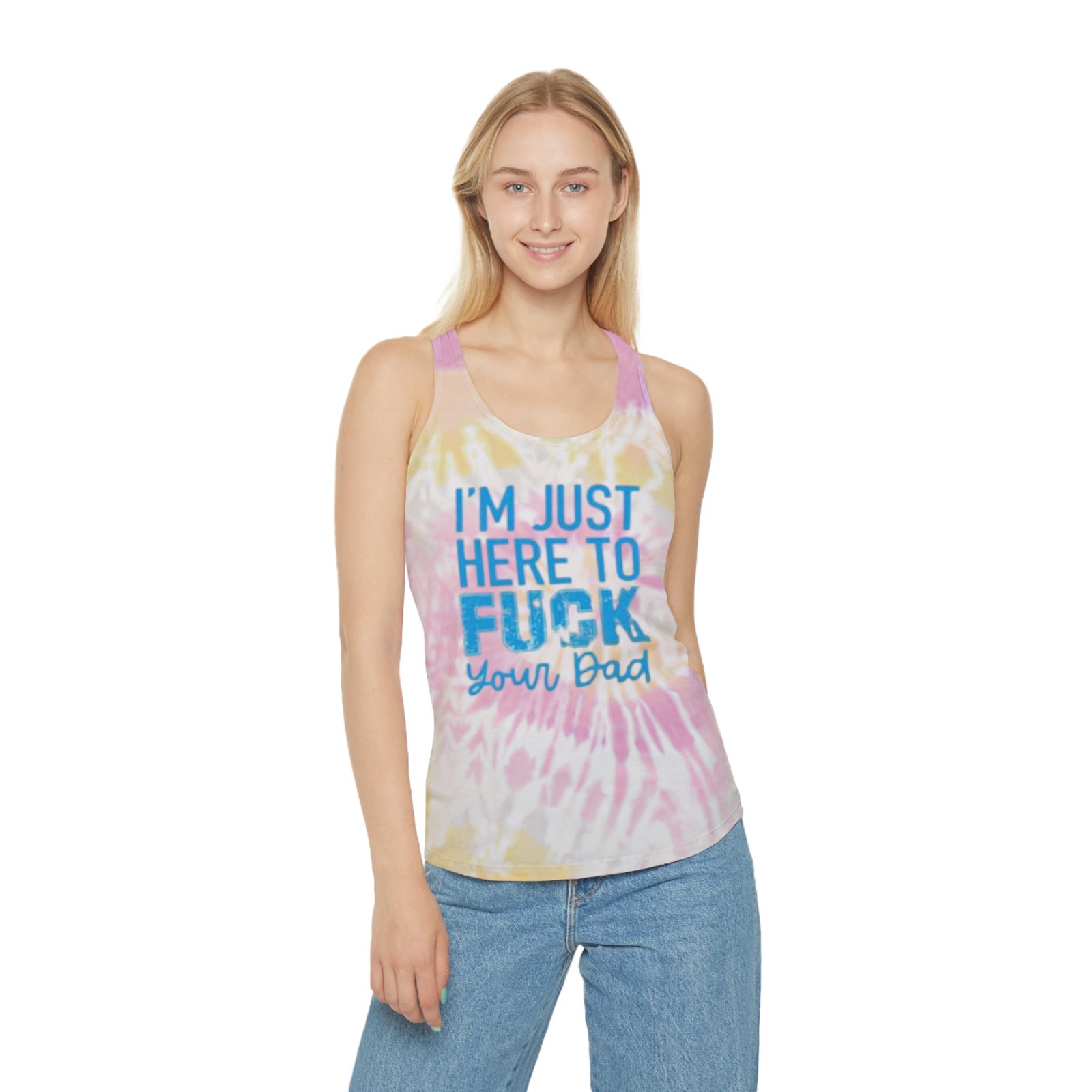 Breathe easy and own your edge in this lightweight tie-dye racerback tank. The slim, curved silhouette moves with you—whether you’re chasing summer waves, layering under a flannel for a late-night fire, or slipping it on for a loud, honest weekend. Soft, specially spun fibers give the fabric a smooth hand and vivid print clarity, while the subtle high-low hem and side seams create a flattering, feminine shape. Each tank’s swirl pattern is unique from the dyeing process, so yours will feel like a one-of-a-kind piece with attitude.